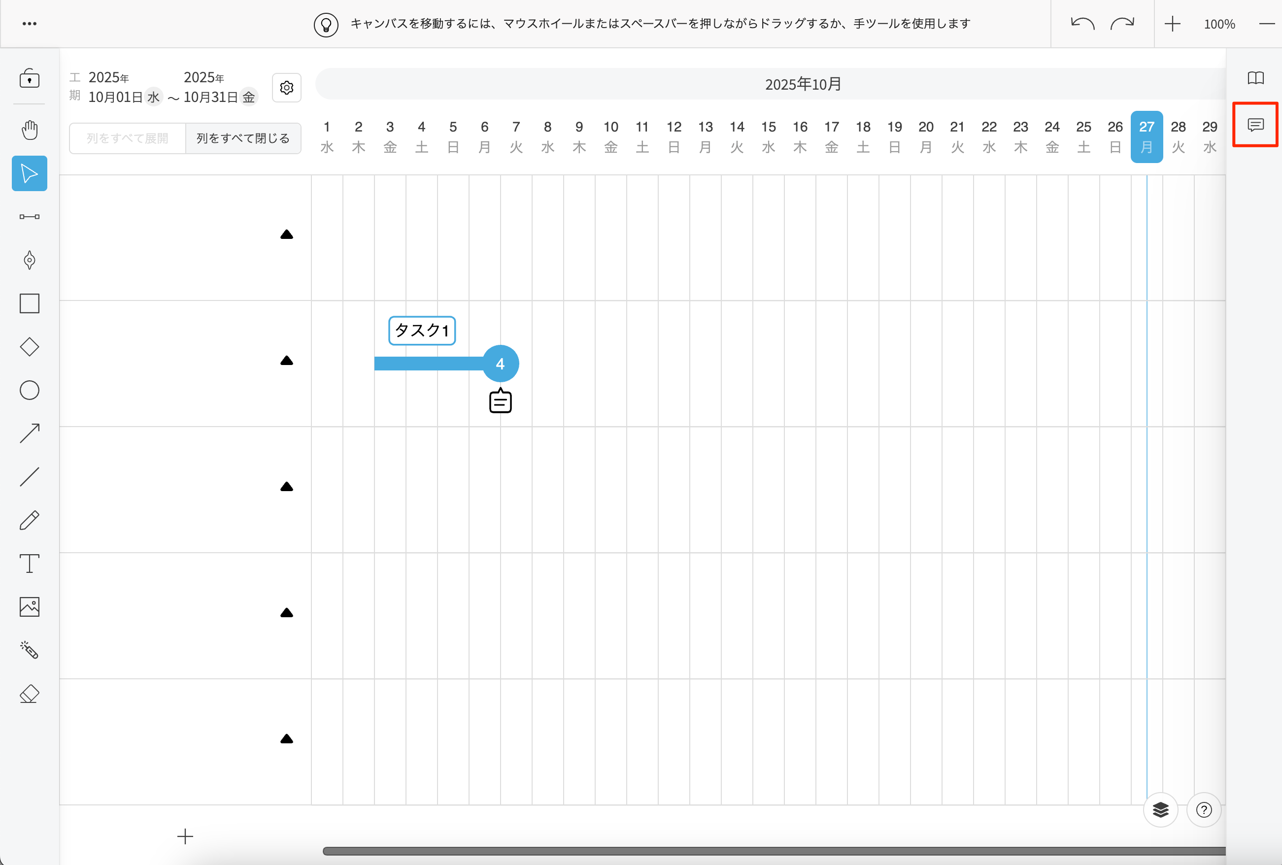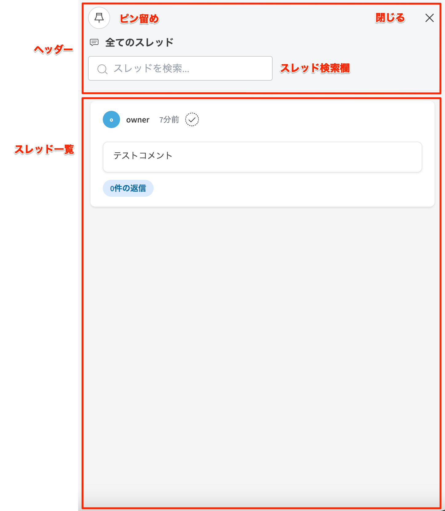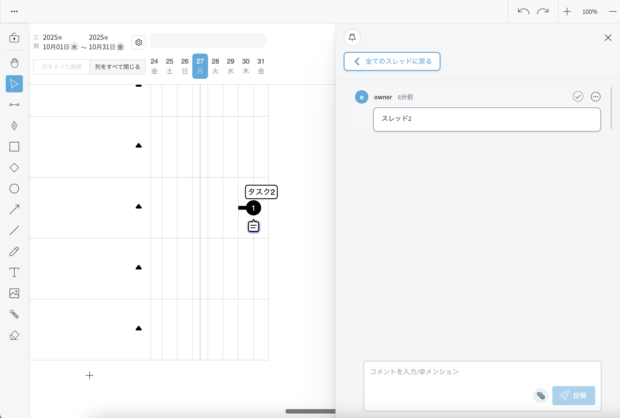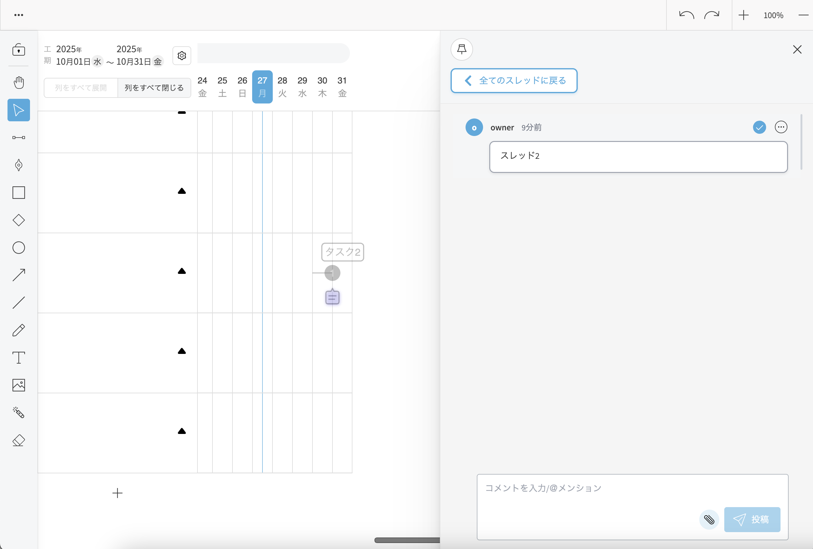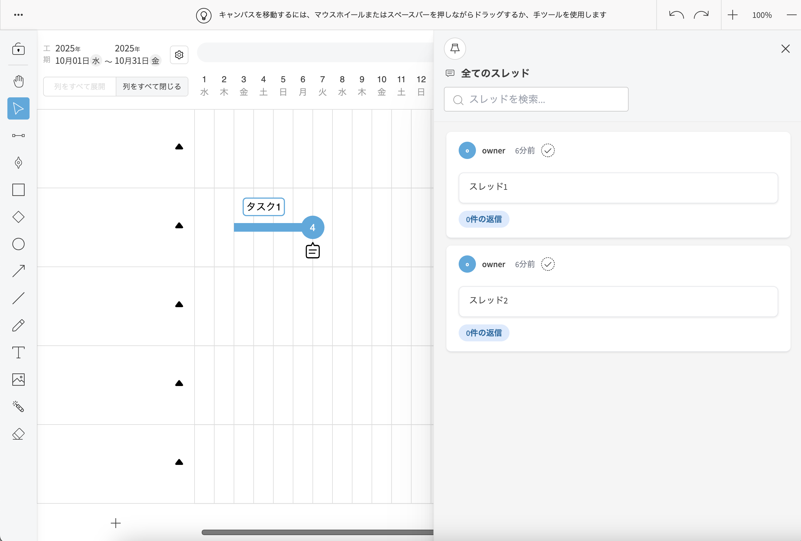 スレッドをクリックすると、該当のコメントのあるタスクまでキャンバスがスクロールし、サイドバーにコメントが表示されます。