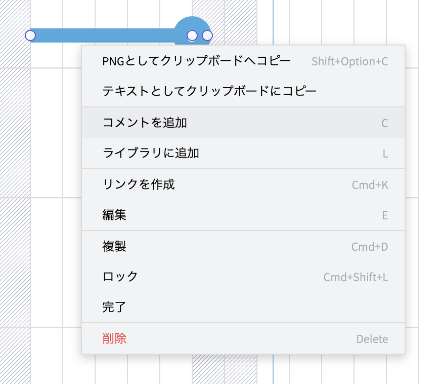 タスクを右クリック(iPad:タッチ&ホールド)でコンテキストメニューを開き、[コメント追加]を選択します。