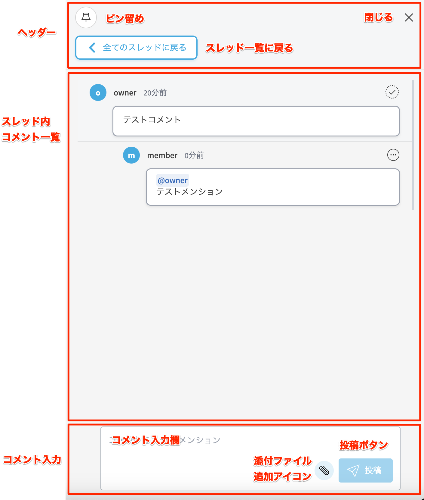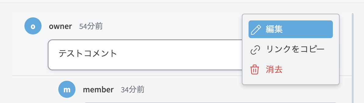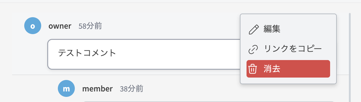 組織内のメンバーとコメントのやり取りをすることができます。 コメントが投稿されると、関連するメンバーにメール通知が送信されます。