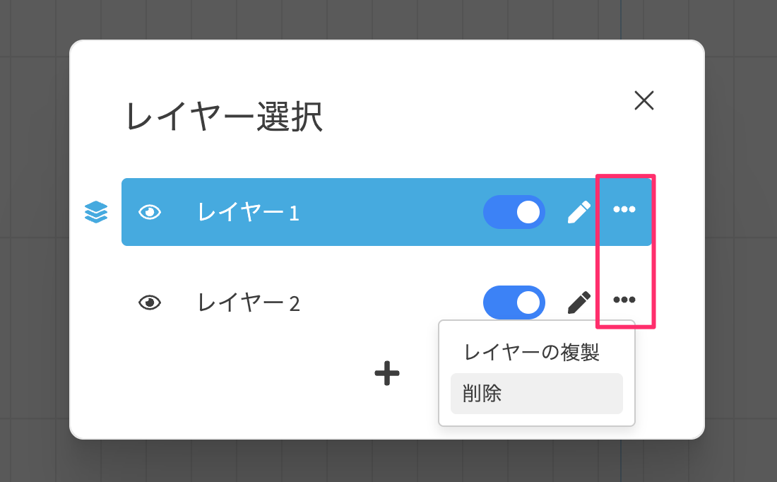 削除したいレイヤーの[…]のドロップダウンメニューから[削除]ボタンをクリックします。