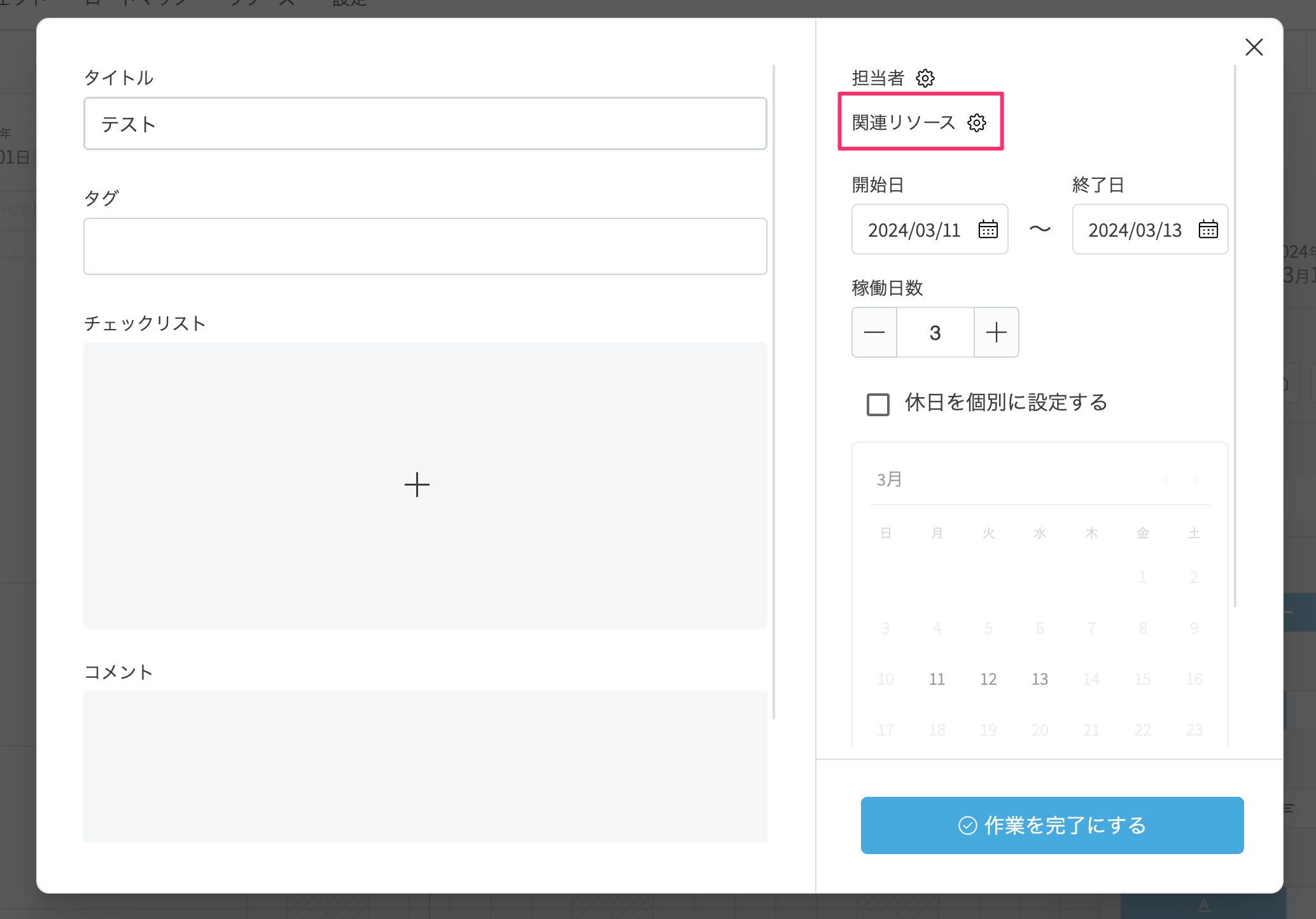 - タスクをクリックして選択します。