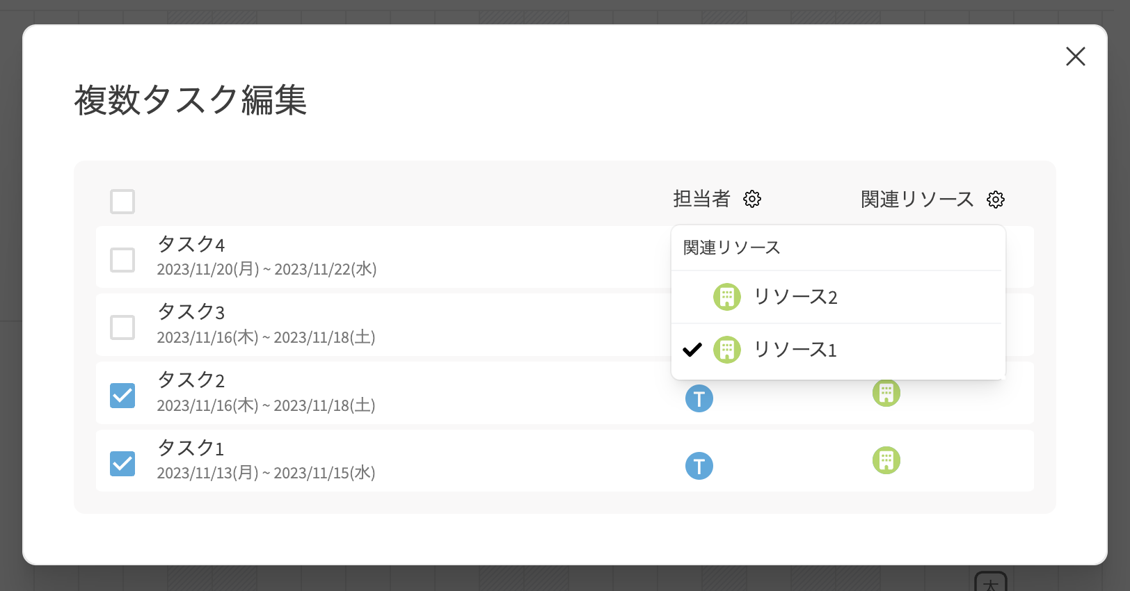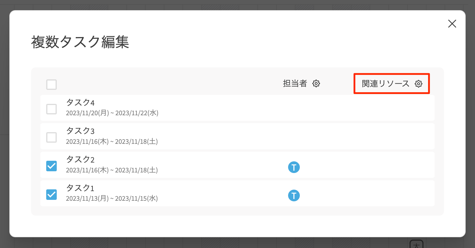 複数のタスクのリソースをまとめて割り当て、割り当てを解除する