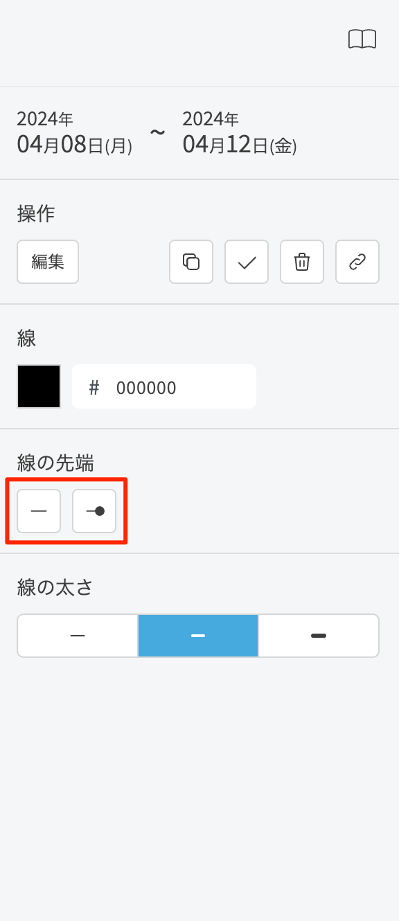 サイドバーの線の先端の[始点]、[終点]のいずれかのアイコンをクリックします。