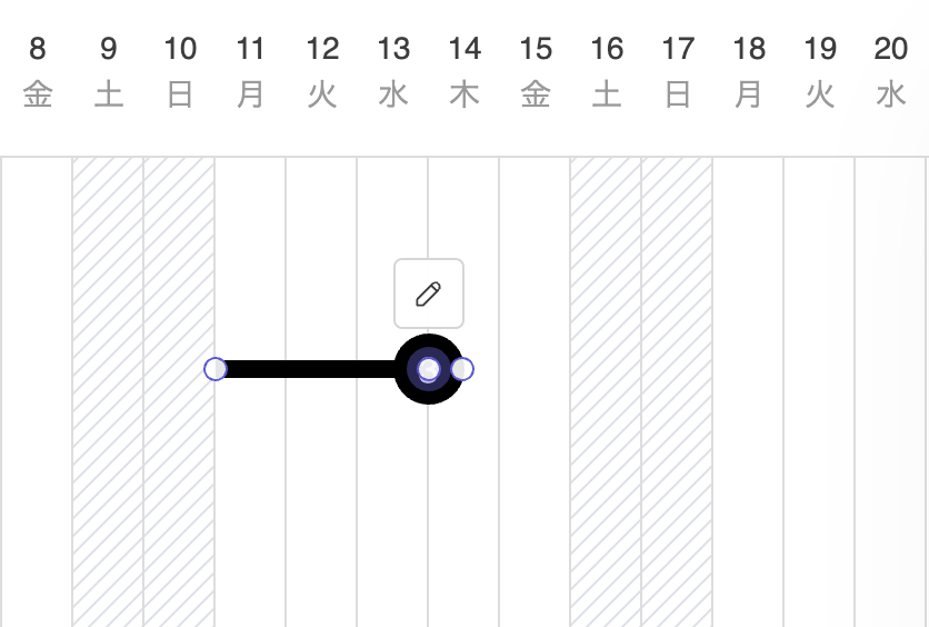 この操作では稼働日数が保持されたまま移動します。 ダイアログの表示は、右クリックのコンテキストメニューから[依存関係のタスクを移動する際に確認ダイアログを表示]を選択してOFFにすることができます。