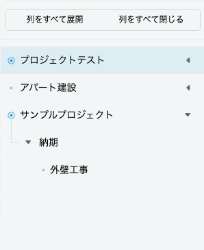 - [列を全て閉じる]は全てのプロジェクトが閉じられ、プロジェクトのみが表示されます。
