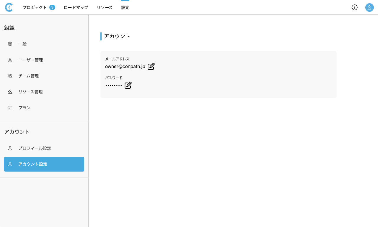 アカウント設定では、ログインしているユーザー個人のアカウントに関する設定を行うことができます。