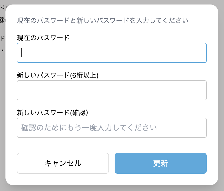 現在のパスワード、新しいパスワードを入力し、更新をクリックします。