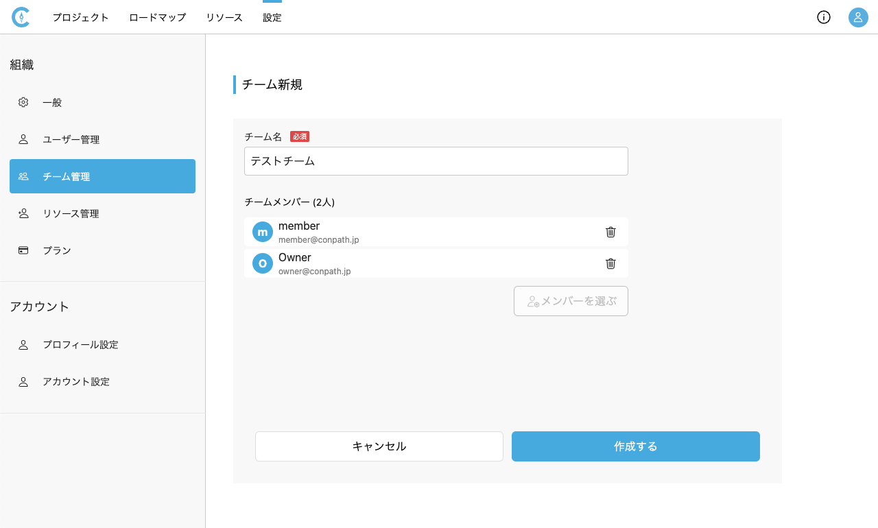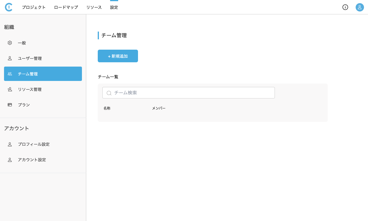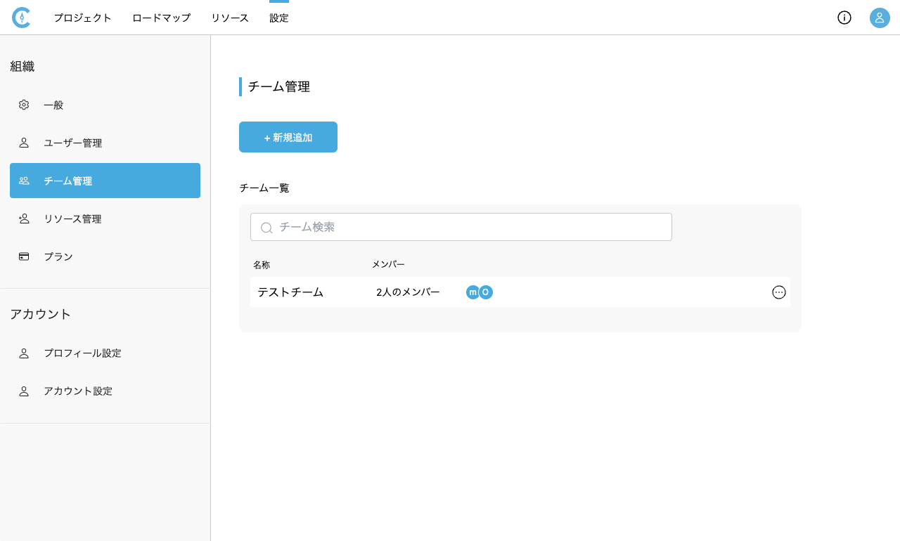 チーム管理では、組織のメンバーをグループ単位で登録することができます。登録したチームをプロジェクトに割り当てることで、ユーザーの管理が容易になります。