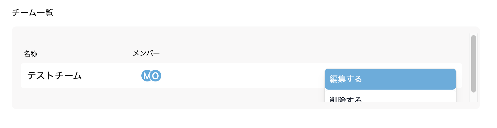 チーム一覧のチームの[…]のドロップダウンメニューから[編集する]をクリックします。